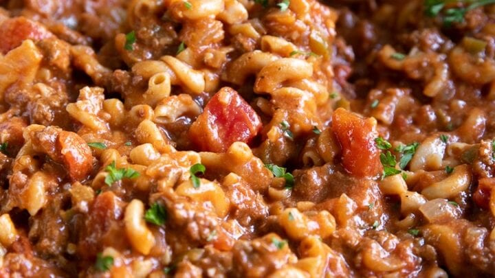 American goulash is an easy, one-pot, classic comfort food made with ground beef, tomatoes, and macaroni pasta noodles. Enjoy year-round and delicious leftovers. The irresistible goulash recipe is guaranteed to win over even the pickiest eaters! It's definitely a favorite easy weeknight dinner.