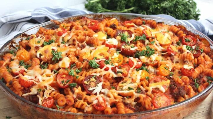 If you are looking for a hearty and comforting meal, I've got you covered with this beef and tomato pasta bake. Pasta is baked in a rich tomato sauce and topped with cheese for an easy dinner that the whole family will love. If this is the first time making the dish, it will become a family favorite.