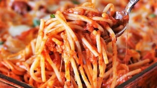 It doesn't take fancy ingredients to whip up a pan of Nanna's Baked Spaghetti. Just simple ingredients and lots of cheese are the secrets that make it so good.
