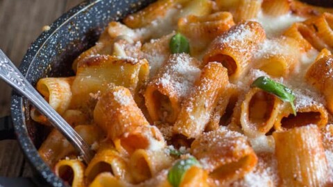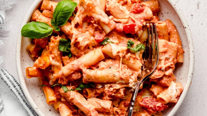 Baked rigatoni is a simple dinner that is perfect for busy weeknights and next-day leftovers.