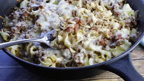 Old fashioned hamburger noodle casserole tastes like lasagna without all the fuss. And the best part? It's ready to eat in 30 minutes.
