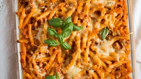 This bolognese pasta bake is a perfect weeknight family dinner that will please everybody. Total comfort food, what can be better than baked pasta coated with a creamy and hearty Italian meat sauce?