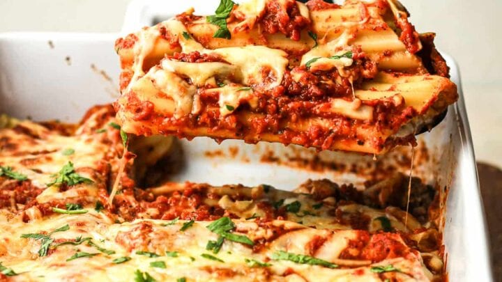 Traditional lasagna made with a rich meat sauce, flavorful bechamel sauce, and plenty of delicious ingredients will have you begging for more.
