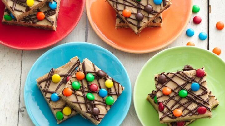 If you have a large crowd coming for lunch, peanut butter chocolate chip cookie bars are a great choice. This is one of my favorite cheap party food ideas that everyone loves, and it will satisfy any chocolate craving while feeding a lot of people.