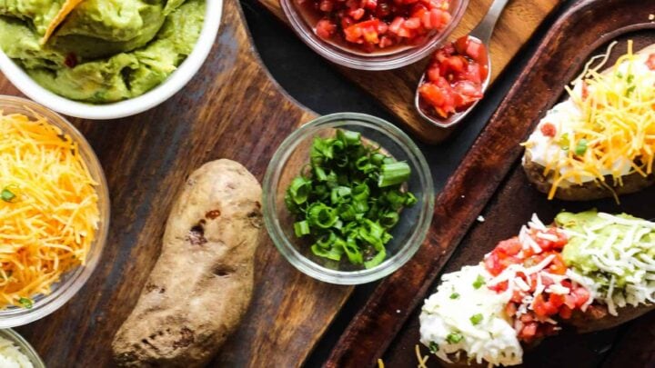 You really can't go wrong with baked potato bars because you can add a variety of toppings that everyone can choose from. Simply cook your potatoes ahead of time, prep your toppings, and have it all ready to go when guests arrive.