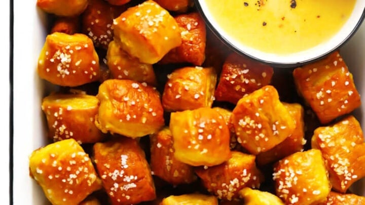 I have a hard time walking past the pretzel store at the mall, but why spend the money when you can make pretzel bites at home? The buttery pretzels are easy to make and come out so soft and tasty.