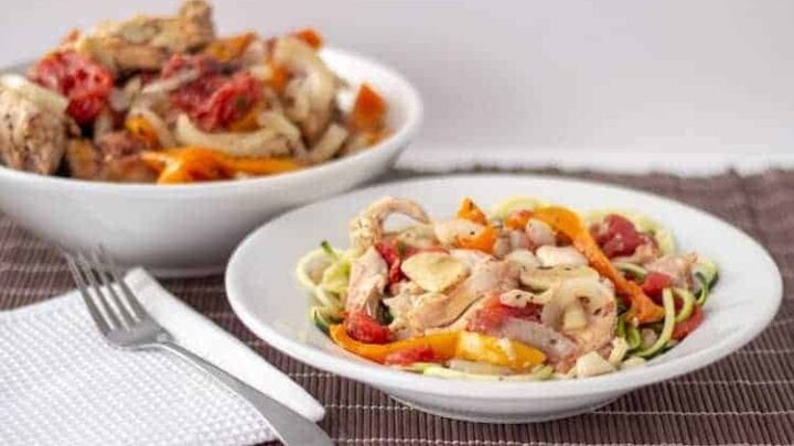 Slow cooker chicken cacciatore is not only easy meal prep but healthy eating. The recipe only calls for a handful of ingredients including sweet peppers and skinless chicken thighs. And the best part? It's only seven small carbs for a delicious serving of chicken cacciatore.