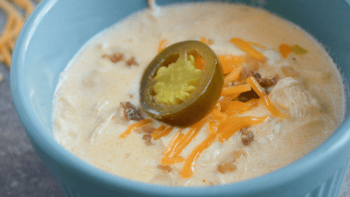Jalapeรฑo popper soup, with chicken, cheddar cheese, bacon, cream cheese, and more, is a creamy, hearty soup that features a lot of flavor and a small amount of carbs.