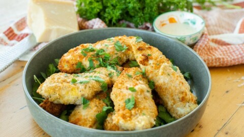 Easy air fryer parmesan chicken tenders are a favorite quick and easy dinner or lunch option for both kids and adults. They are flavorful, super tender, and made in less than 15 minutes. Trust me, you’re going to love them.