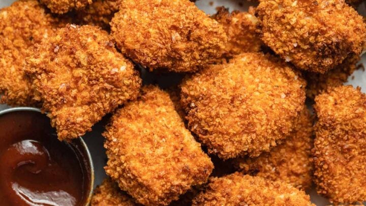 Frozen air fryer chicken nuggets are crisp and crunchy, with perfectly cooked juicy chicken on the inside.