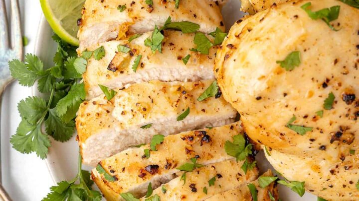With a margarita chicken marinade of citrus juices, tequila, and honey, this air fryer chicken breast is so tender, juicy, and flavorful. This pairs so well with cilantro lime rice for a complete meal. It's one of our favorite ways to make chicken.