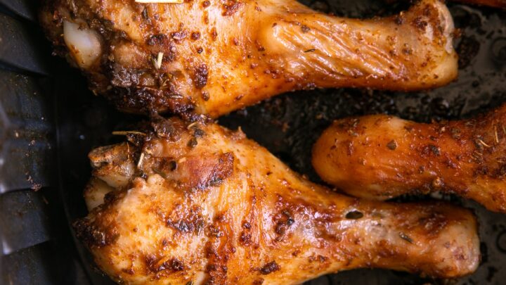 Air fryer chicken legs are an easy and delicious dinner recipe loved by both kids and adults alike. Coated with olive oil, garlic powder, and a blend of seasonings, cooking chicken legs in the air fryer takes just 20 minutes and results in the most perfectly crisp, flavorful skin.