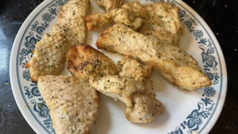 These air fryer herbed chicken tenders are cooked without breading. You can easily add your favorite spice blend for a favorite dish. And it's a great way to get dinner on the table with a quick cook time.