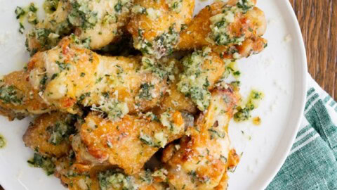 Here’s a gourmet spin on chicken wings in the air fryer. Load up the garlic, parmesan, and herbs to enjoy them. The recipe features less oil for a more healthy way of eating.