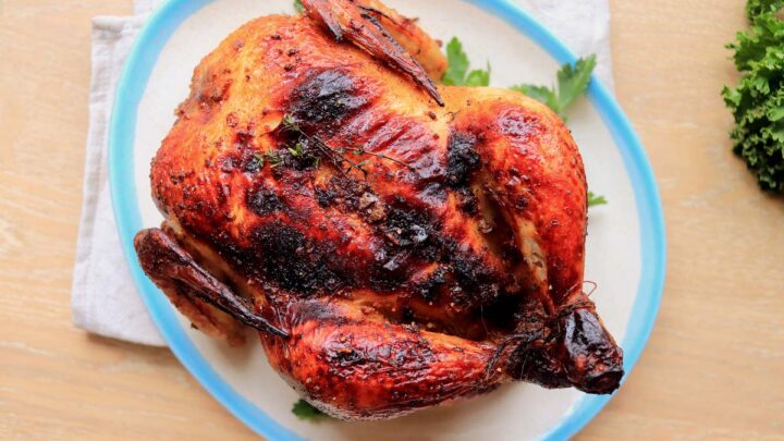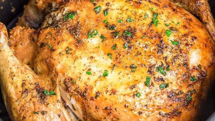 Air fryer whole chicken has the perfect blend of dry rub spices. The chicken comes out of the air fryer moist and delicious.