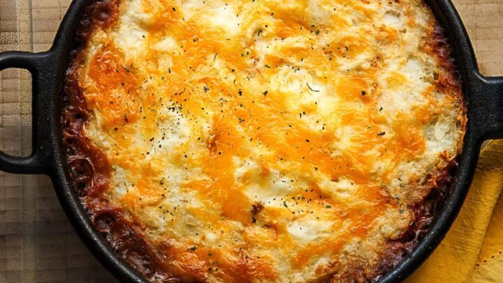 You can make the classic comfort food in a cast iron skillet or a casserole dish. The savory chili meal is definitely one you want to keep in your recipe box.
