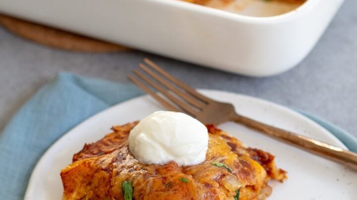These sour cream chicken enchiladas are the best enchiladas I have ever eaten. Mexican chicken enchiladas are creamy and full of flavor.