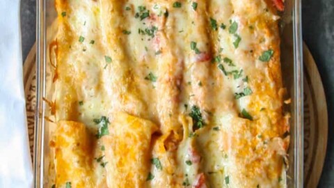 Let’s face it, everyone loves chicken enchiladas. I mean, what’s not to love? But hold on to your sombrero because today there is a new dish in town. Easy, made from scratch, Tequila-Lime Chicken Enchiladas are made with hands-down the most unbelievably delicious marinade and sauce ever.