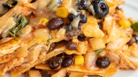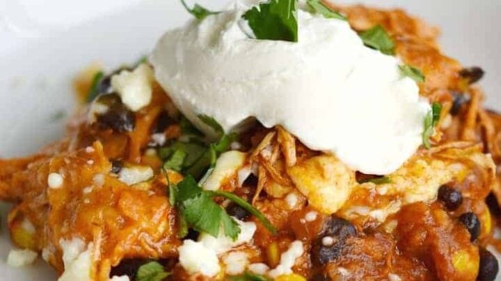 Tired of having to roll tortillas? Now you can layer them with all your favorite enchilada ingredients. It’s an effortless dinner recipe because you can cook it in your Crock Pot.