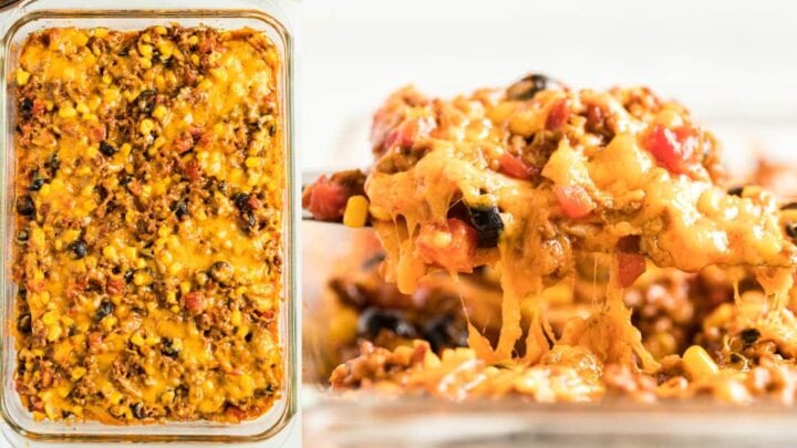 If you love tacos, you will love this taco bake casserole. The recipe is super easy and is packed full of flavor with Ro-Tel, taco seasoning, onions, black olives, and more. And the best part? It only takes 35 minutes from start to finish.