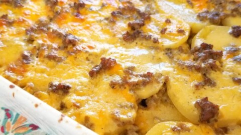 Hamburger potato casserole is a creamy comfort-filled dish that will feed six to eight people. The kids love the recipe and we've made it numerous times.