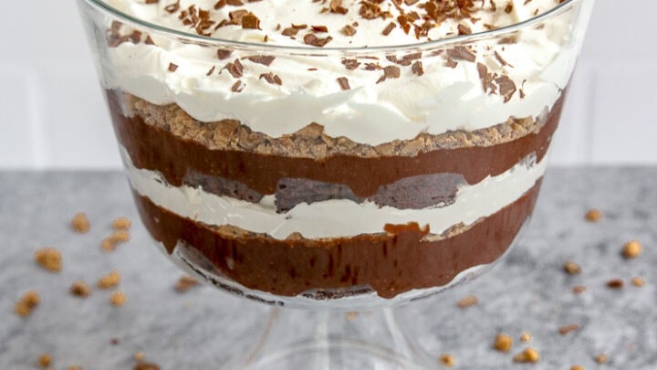 There's nothing better than a trifle with layers of chocolate, whipped cream, and Heath bar. This one is easy to make and so delicious.