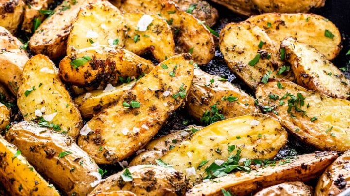 Roasted red potatoes are one of the easiest side dish recipes to make. They are super budget-friendly and taste amazing. They are a great choice with pork chops or a pork loin roast. You can even add some caramelized onions to the recipe and add some different flavors.