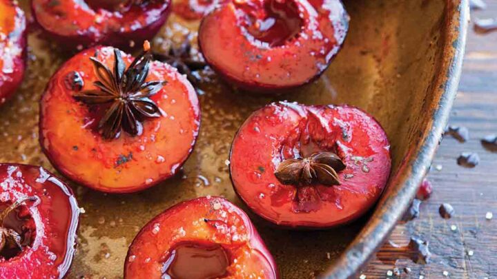 Oven-roasted plums are a simple, easy side dish that takes little effort. The sweet side goes great with the main course or a dessert.