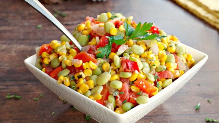 "Sufferin' succotash?" Not quite! This pretty platter is packed with the perfect combination of sweet, savory, and tangy flavors. Enjoy this classic side for the holidays or any time of year!
