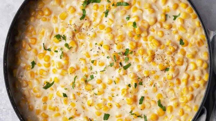 This easy skillet southern creamed corn recipe is perfect for the holiday season or any night of the week.