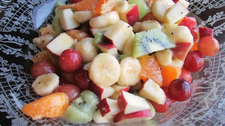 Fruit salad is perfect as a side dish on the main table or on the dessert table. With just six ingredients, you will love the simplicity and flavors of this salad.