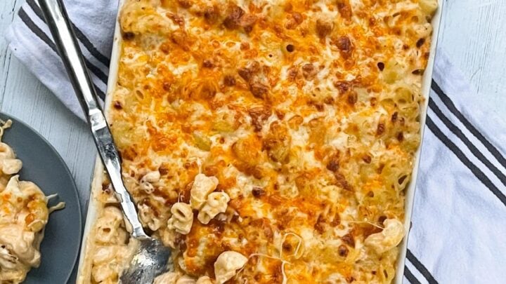 This Mac and cheese went viral on TikTok with over 15M views. It is a creamy, indulgent, and decadent mac and cheese you can make a day ahead.