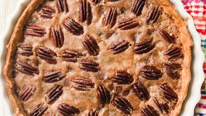 Upgrade traditional pecan pie with this make-ahead southern chocolate pecan tart. With a pie crust, the filling is like pecan bars but extra decadent because it includes chocolate.