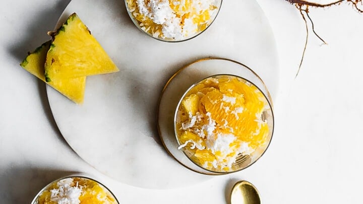 This recipe for ambrosia salad skips the Cool Whip and canned fruit for a decidedly more traditional approach. Based on a 19th-century southern recipe, this version of ambrosia is both fresh and simple, using oranges, pineapple, freshly grated coconut, and the slightest slip of sherry.