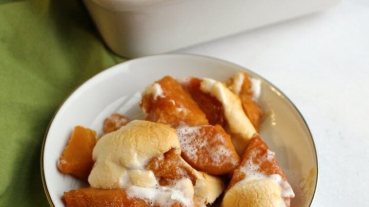 Candied sweet potatoes topped with marshmallows are a Thanksgiving dinner staple. The tender sweet potatoes and gooey marshmallows are a great addition to any big holiday meal. They would be a great addition to a roast chicken or pork dinner throughout the year as well.