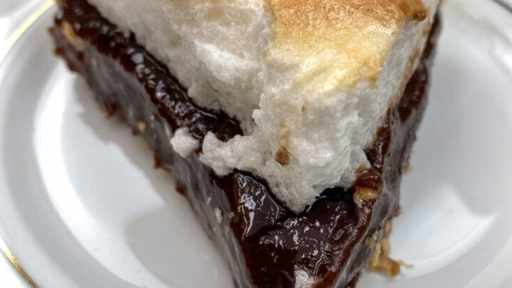 Homemade old fashioned chocolate pie is a creamy, chocolatey, and wonderfully traditional chocolate pudding dessert recipe topped with a light and fluffy meringue. Cream pies are a favorite dessert at potlucks and family gatherings. Plus, this one is easy to make and has a rich chocolate flavor.
