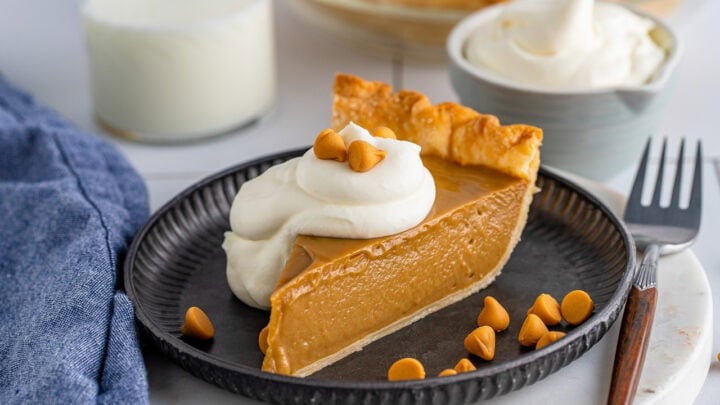 Butterscotch pie is a classic dessert that will bring nostalgia right to the table. It’s made with a creamy, custard-like butterscotch filling, served chilled in a flaky pie crust and topped with a generous dollop of whipped cream.