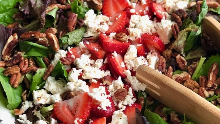 Strawberry goat cheese salad is an easy recipe that is refreshing alongside any chicken dinner. The best thing about this recipe besides the flavors? It's super easy to make.