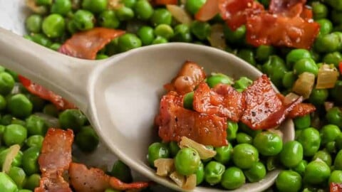 Green peas with bacon are one of our favorite recipes around here. In this classic dish with only five ingredients, you'll get a smooth and crunchy texture along with tons of flavor. It's the ideal side dish for any meal.