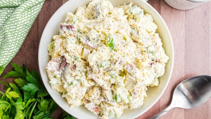 This might just be one of the best potato salads out there. With only six simple ingredients, this recipe belongs with delicious chicken tenders.
