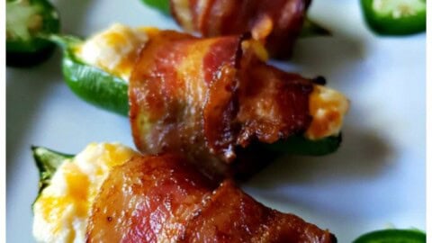 Wondering what to serve with chicken wings? Make it this bacon wrapped jalapeño poppers. The creamy interior and spiciness definitely work well with spicy chicken wings.