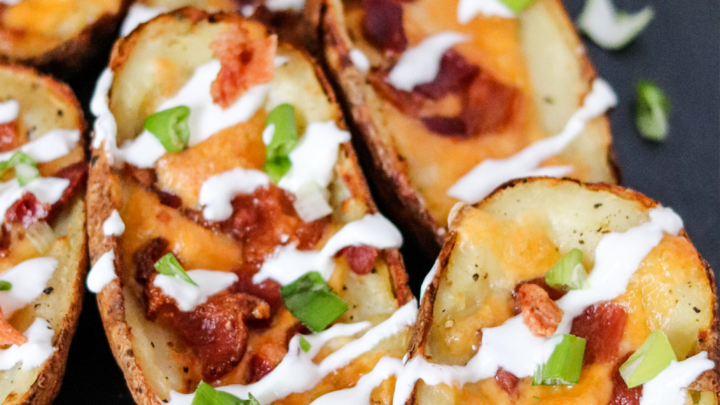 What’s not to love about twice baked potatoes? Loaded with cheese and crispy bacon, these may even disappear more quickly than your hot wings.