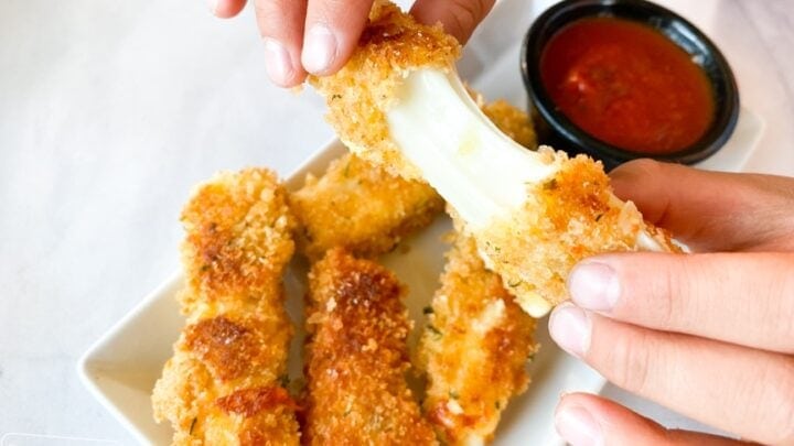 With simple ingredients that include breadcrumbs and string cheese, you’ll soon have gooey, cheesy fried mozzarella sticks from scratch. Don’t forget the marinara sauce for dipping. Also, make more than you think you’ll need because these are addictive!