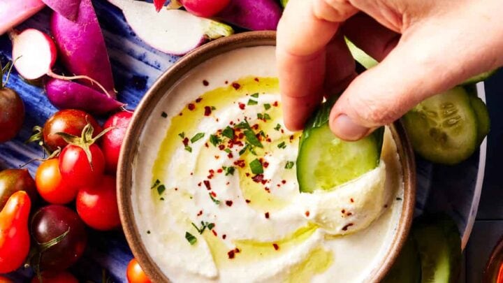 Feta cheese and a cool, refreshing flavor make this whipped feta dip a natural choice for your best chicken wing recipe. Dunk in slices of cucumber for a true treat!