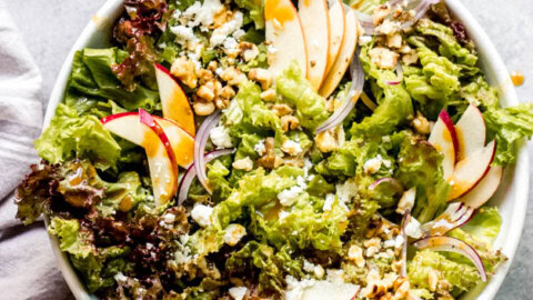 Get your tastebuds ready for a salad that will be a showstopper. With sliced crisp apples, walnuts, feta cheese, balsamic vinegar, and more, this salad will take center stage at your holiday table. And, the best part? It's one of those tasty salads that are super easy to make.