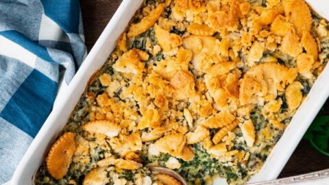Spinach casserole is a delicious side dish topped with crackers and plenty of flavor. The kids may not like spinach, but that will all change when they get one bite of this recipe.