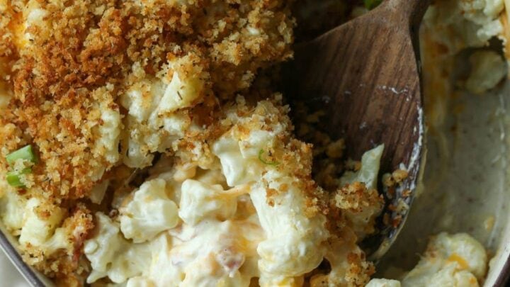 Cheesy casseroles are always a crowd please, including this delicious cauliflower dish. Grab a spiral cut ham, add some honey glaze, and serve up the delicious cauliflower as a side.