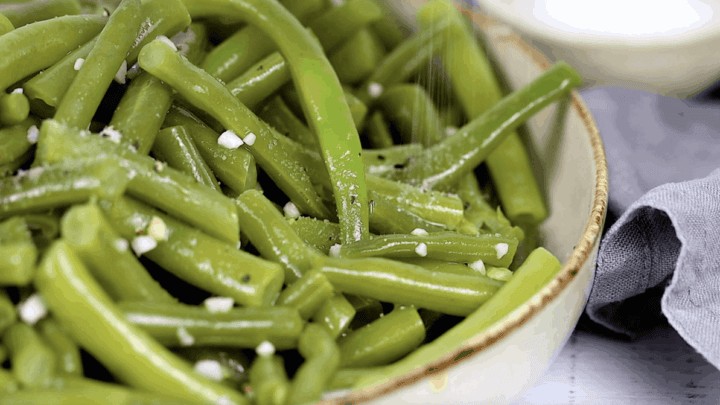 Fresh green beans taste wonderful with a Christmas ham, and you don't have to spend a lot of time making them. With four ingredients you can have this ready and on the table in no time.