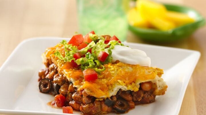 You don't need to cook an extra pan of cornbread, because this tamale pie features it as part of the dish. With enchilada sauce, shredded cheddar cheese, green chilies, and more, you've got one amazing meal. Trust me, it's a great thing.
