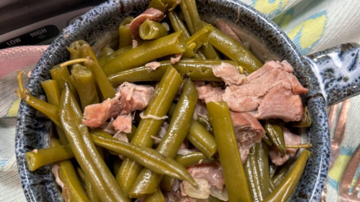 Southern green beans and ham can be dinner or a great side dish. The savory taste of the beans and ham is hard to beat. It's a simple dish and one that goes along great with cornbread.
